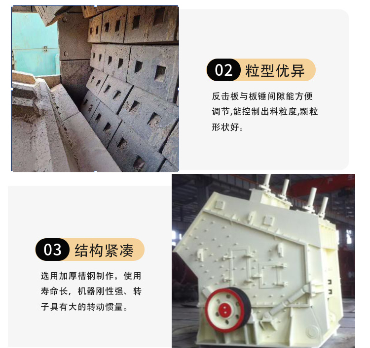 反擊式破碎機(jī)能破碎進(jìn)料粒度不超過(guò)500mm、抗壓強(qiáng)度不超過(guò)350MPa的各種粗、中、細(xì)石料(石灰?guī)r、石灰石、混凝土等),尤其擅長(zhǎng)加工韌性小,脆性大的礦石,成品棱角均勻,是常用的二級(jí)破碎設(shè)備,廣泛應(yīng)用于各種礦石破碎、鐵路、高速公路、能源、水泥、化工、建筑等行業(yè),其排料粒度大小可以調(diào)節(jié),破碎規(guī)格多樣化。
