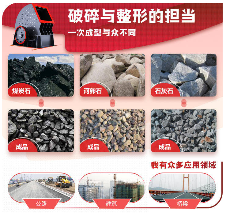 重錘式破碎機的應用更是了得,各種石灰石、青石、大理石、花崗巖、砂巖、鵝卵石等抗壓強度≤200MPa的中等硬度石料均能“錘到必碎”,且破碎比大,是礦山、冶煉、化工、公路等工業部門石料破碎的好選擇。