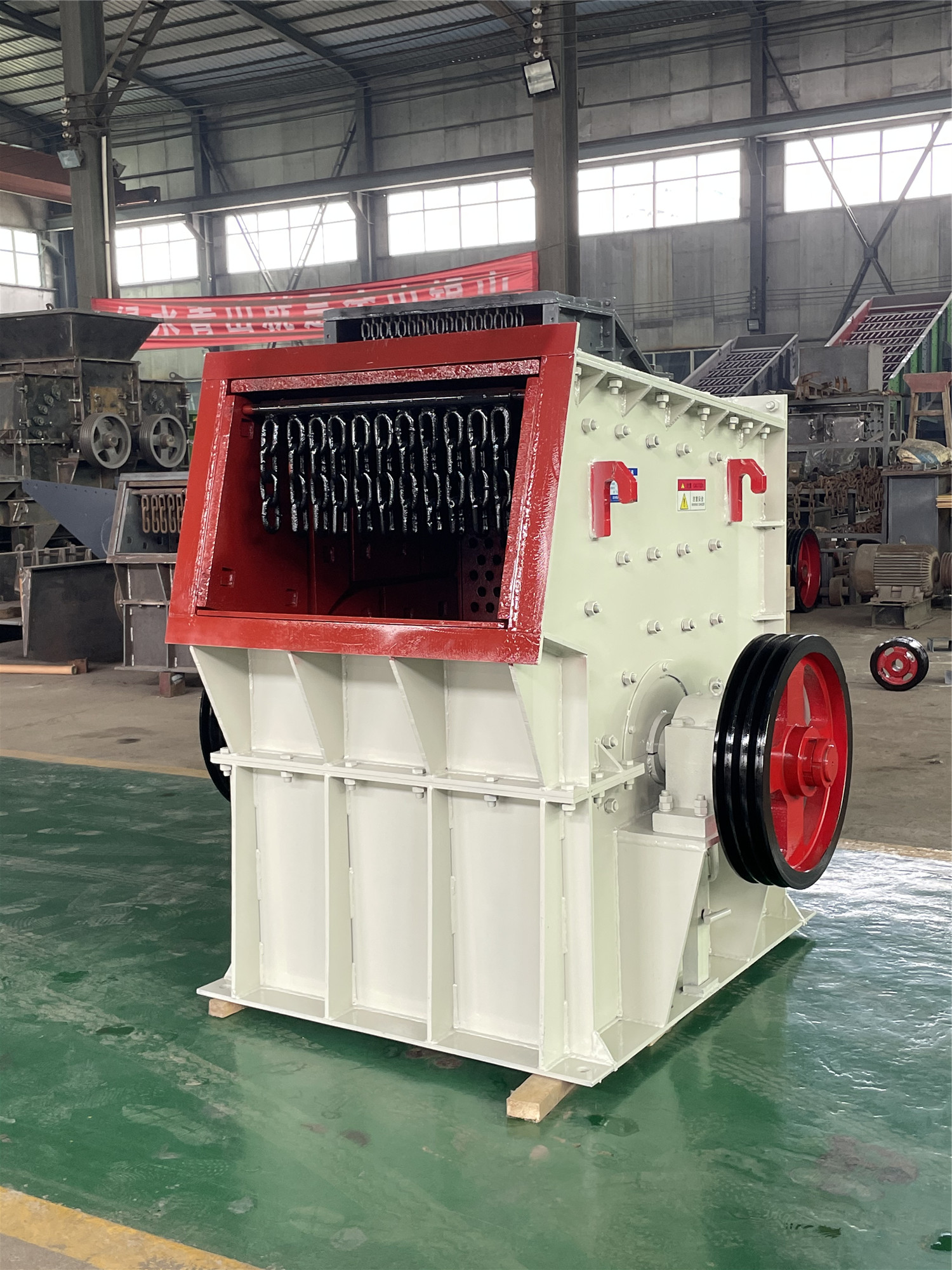 凱龍環(huán)保是一家專業(yè)生產(chǎn)破碎機(jī)系列產(chǎn)品的廠家,箱式破碎機(jī)是我們廠里的主要產(chǎn)品之一,也叫方箱破碎機(jī),重錘破碎機(jī),屬于大型的破石機(jī)設(shè)備,是我們?cè)谑嗄晟a(chǎn)實(shí)踐的基礎(chǔ)上綜合同類破碎機(jī)的優(yōu)點(diǎn)研制而成的。與同類規(guī)格產(chǎn)能的以顎式破碎機(jī)為主體的砂石料生產(chǎn)線相比,變兩級(jí)破碎為一級(jí)破碎,粗碎細(xì)碎合一碎,在250MPa以下的中