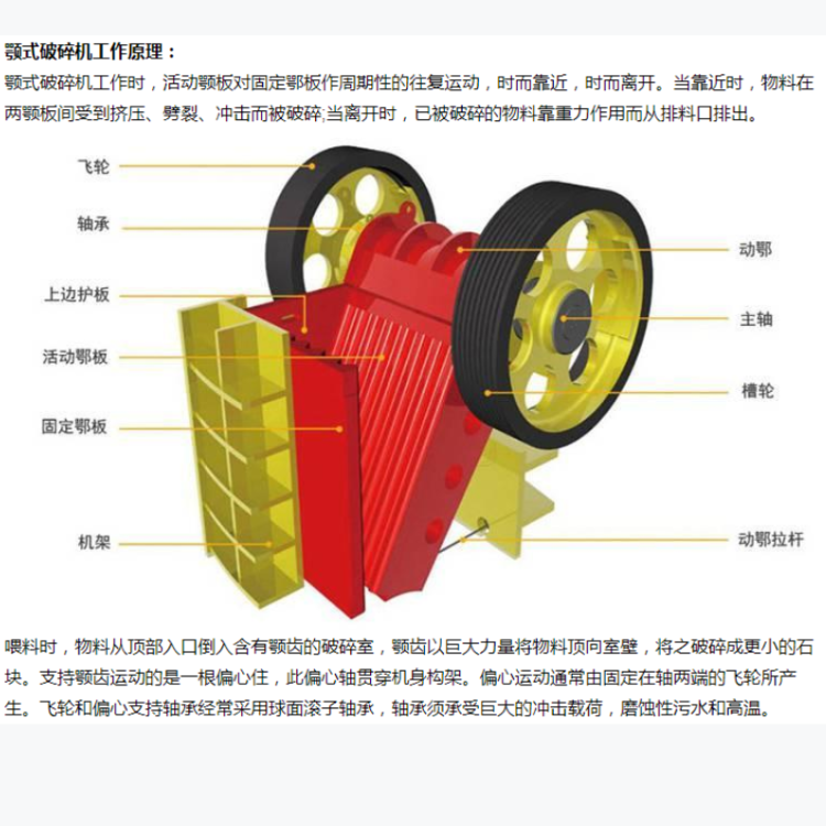 顎式破碎機主要用于對原材料的中碎和細碎,破碎方式為曲動擠壓式,具有破碎比大、產品粒度均勻、結構簡單、工作可靠、維護簡便、運營費用經濟等特點。廣泛運用于礦山、冶煉、建材、公路、水利和化學工業等眾多部門,破碎抗壓強度不超過320兆帕的各種物料。